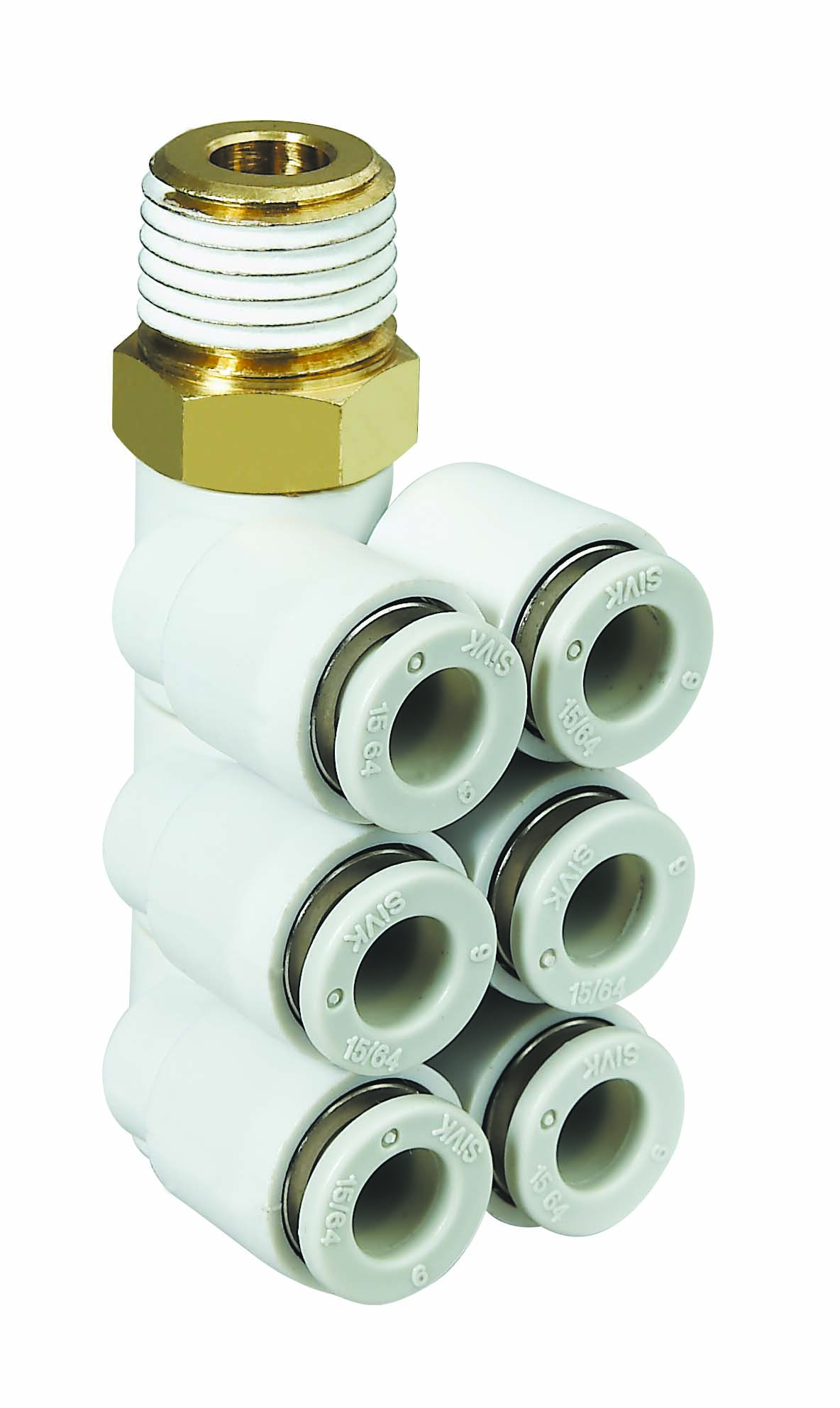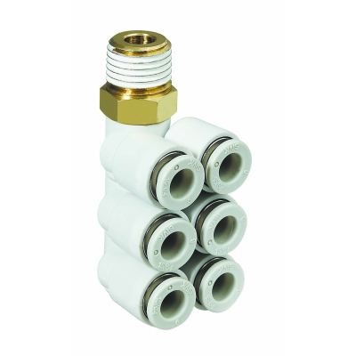 Pneumatic » ข้อต่อฟิตติ้ง » ข้อต่อฟิตติ้ง KQ(เกาหลี) » ฟิตติ้งข้องอ 90 องศา เสียบสายหกทาง เกลียวนอก