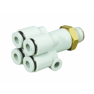 คุณสมบัติ,รายละเอียดอื่นๆ: ฟิตติ้งเสียบสายสี่ทาง เกลียวนอก