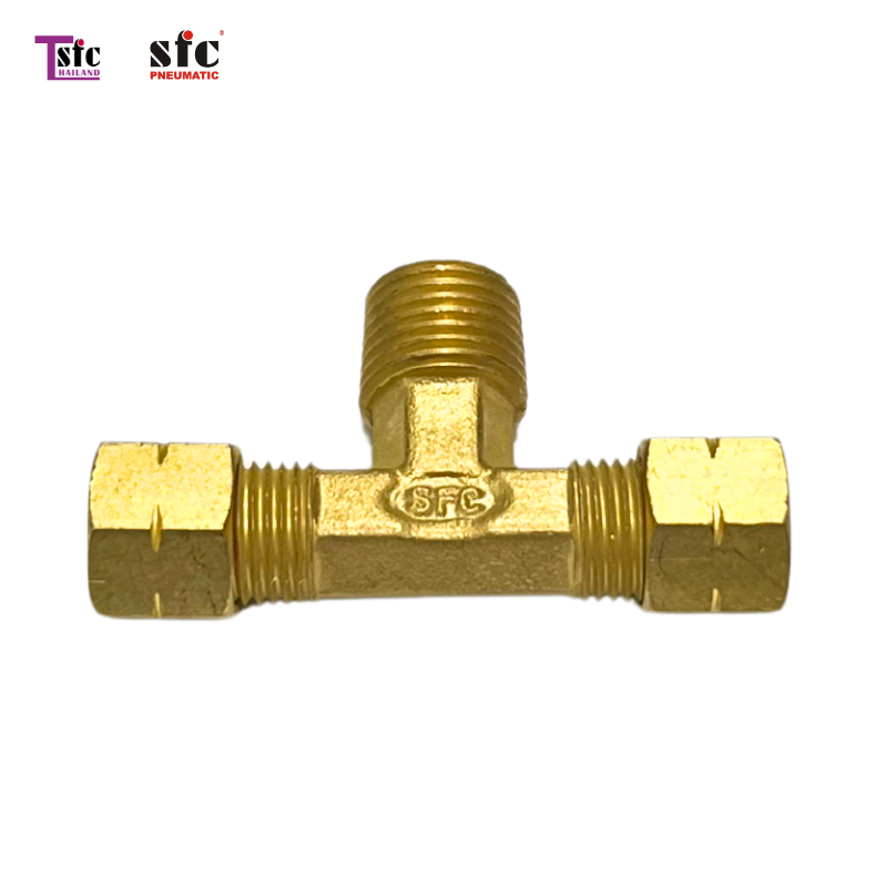 Pneumatic » ข้อต่อฟิตติ้ง » ข้อต่อฟิตติ้งทองเหลือง » ฟิตติ้งทองเหลืองตัวที เสียบสายสองทางตาไก่ เกลียวนอก