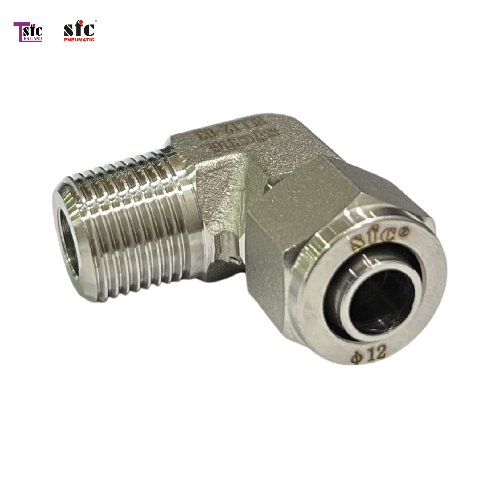 Pneumatic » ข้อต่อฟิตติ้ง » ข้อต่อฟิตติ้งสแตนเลส » ฟิตติ้งสแตนเลส ข้องอ 90 องศา เสียบสายตาไก่ เกลียวนอก