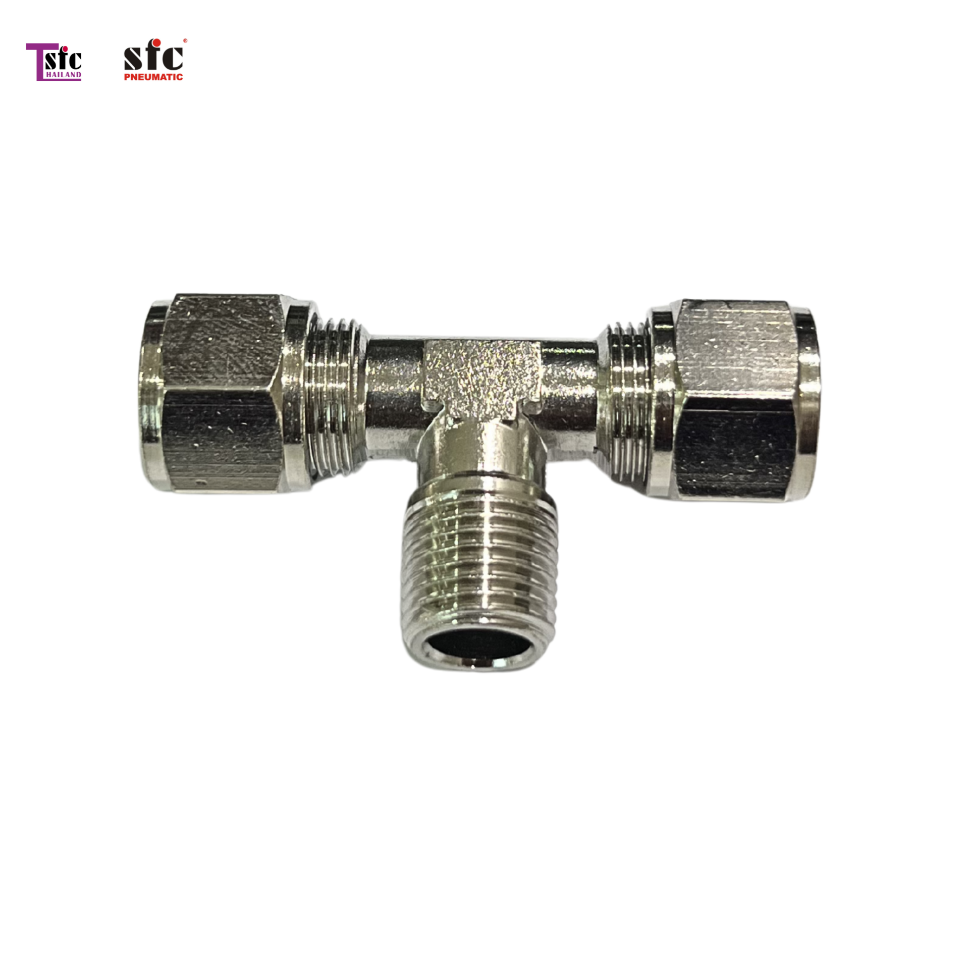 Pneumatic » ข้อต่อฟิตติ้ง » ข้อต่อฟิตติ้งทองเหลืองชุบ » ฟิตติ้งตัวที เสียบสายสองทางตาไก่ เกลียวนอก