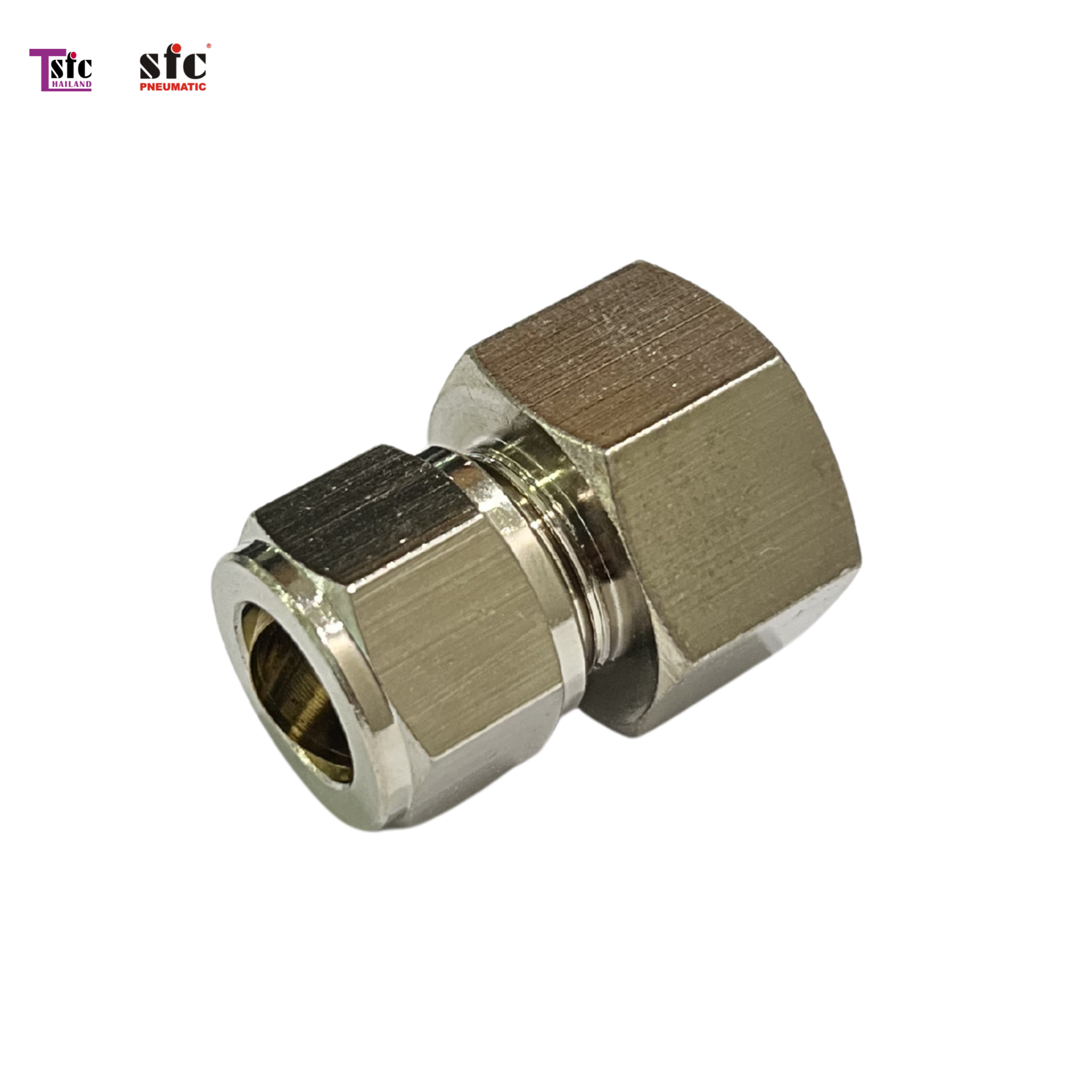 Pneumatic » ข้อต่อฟิตติ้ง » ข้อต่อฟิตติ้งทองเหลืองชุบ » ฟิตติ้ง ต่อตรง เสียบสายตาไก่ เกลียวใน