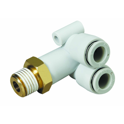 Pneumatic » ข้อต่อฟิตติ้ง » ข้อต่อฟิตติ้ง KQ(เกาหลี) » ฟิตติ้งข้องอ 90 องศา เสียบสายสองทาง เกลียวนอก