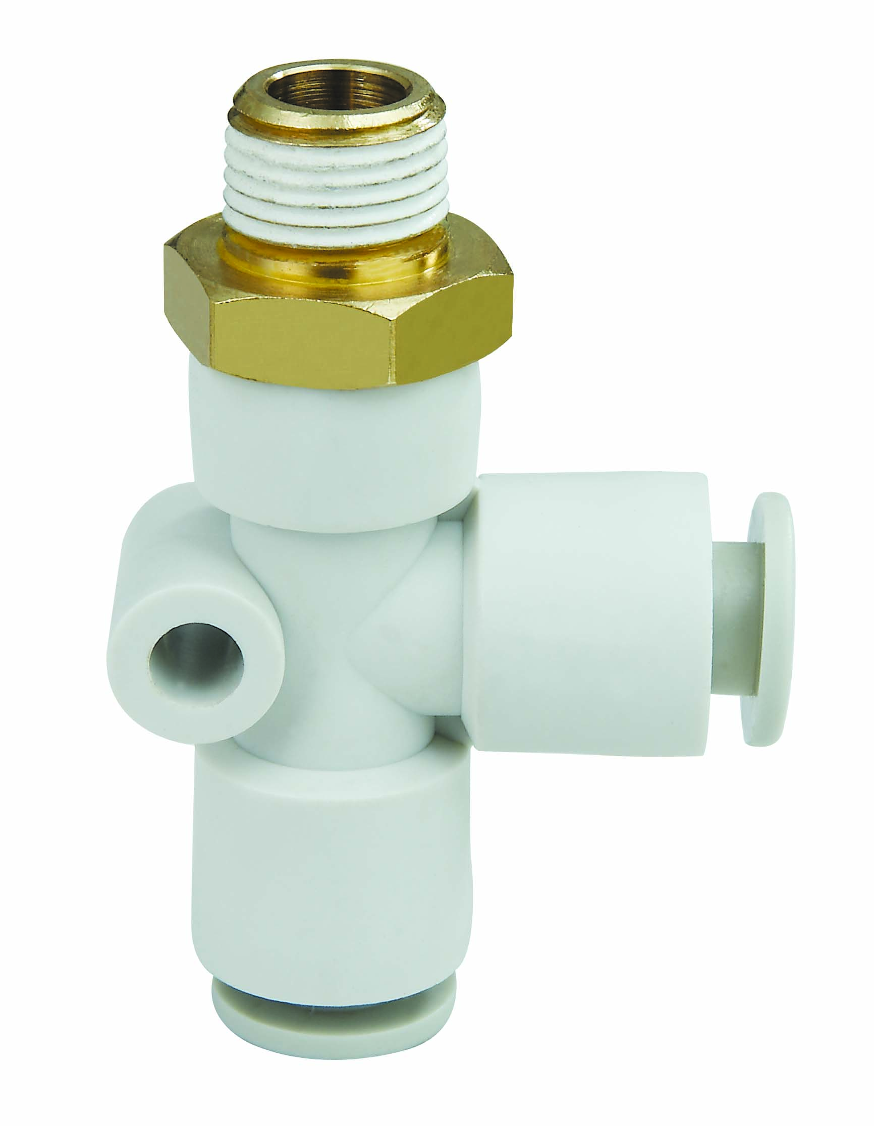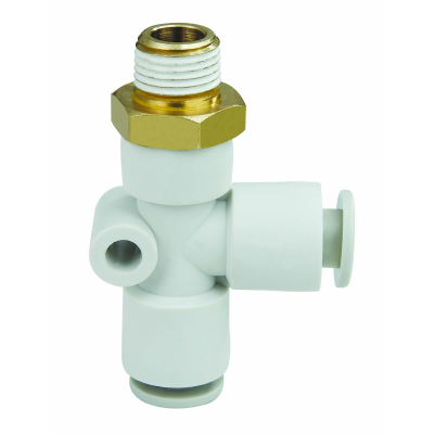 Pneumatic » ข้อต่อฟิตติ้ง » ข้อต่อฟิตติ้ง KQ(เกาหลี) » ฟิตติ้งตัวที เสียบสายสองทาง เกลียวนอก