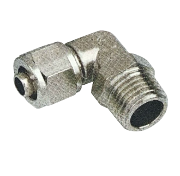 Pneumatic » ข้อต่อฟิตติ้ง » ข้อต่อฟิตติ้งทองเหลืองชุบ » ฟิตติ้ง ข้องอ 90 องศา เสียบสายเดือย เกลียวนอก
