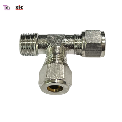 Pneumatic » ข้อต่อฟิตติ้ง » ข้อต่อฟิตติ้งทองเหลืองชุบ » ฟิตติ้งตัวที เสียบสายสองทางตาไก่ เกลียวนอก